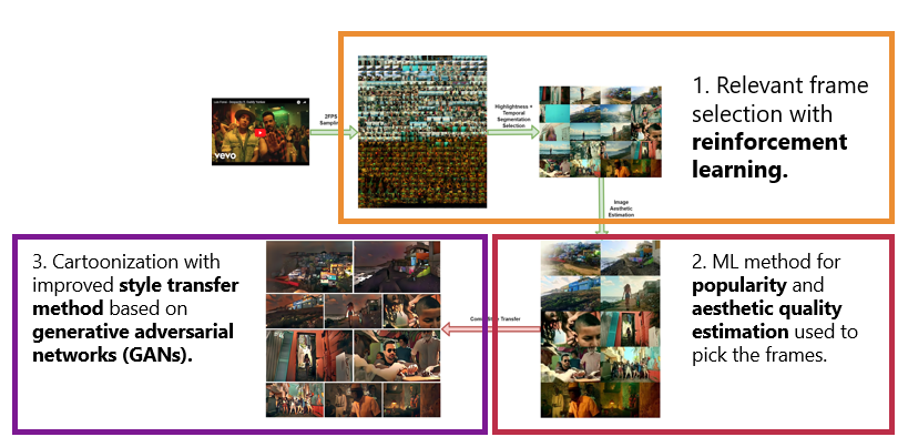 AI watches -> evaluates-> choosing the best frames -> changes the style of best-selected frames. This is how a single comic page is generated.